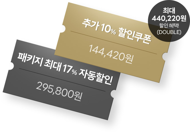 * 추가 10% 할인 쿠폰 대상 : 신규회원 & 1년 이내 미등록 회원 (쿠폰 발급 시점 기준)